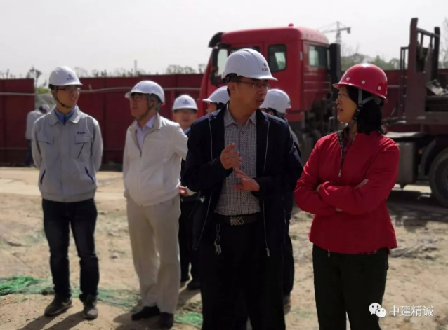 會后項目部負(fù)責(zé)人楊寧、張志遠(yuǎn)帶領(lǐng)公司領(lǐng)導(dǎo)參觀施工現(xiàn)場。