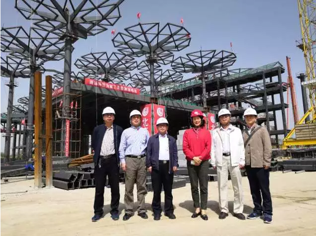 2018年5月22日,中建精誠董事長金鐵英赴2019年中國北京世界園藝博覽會國際館項目現(xiàn)場聽取全過程造價咨詢及管理服務(wù)專題匯報,中建精誠總經(jīng)理楊中孚、常務(wù)副總經(jīng)理任雙成出席匯報會。