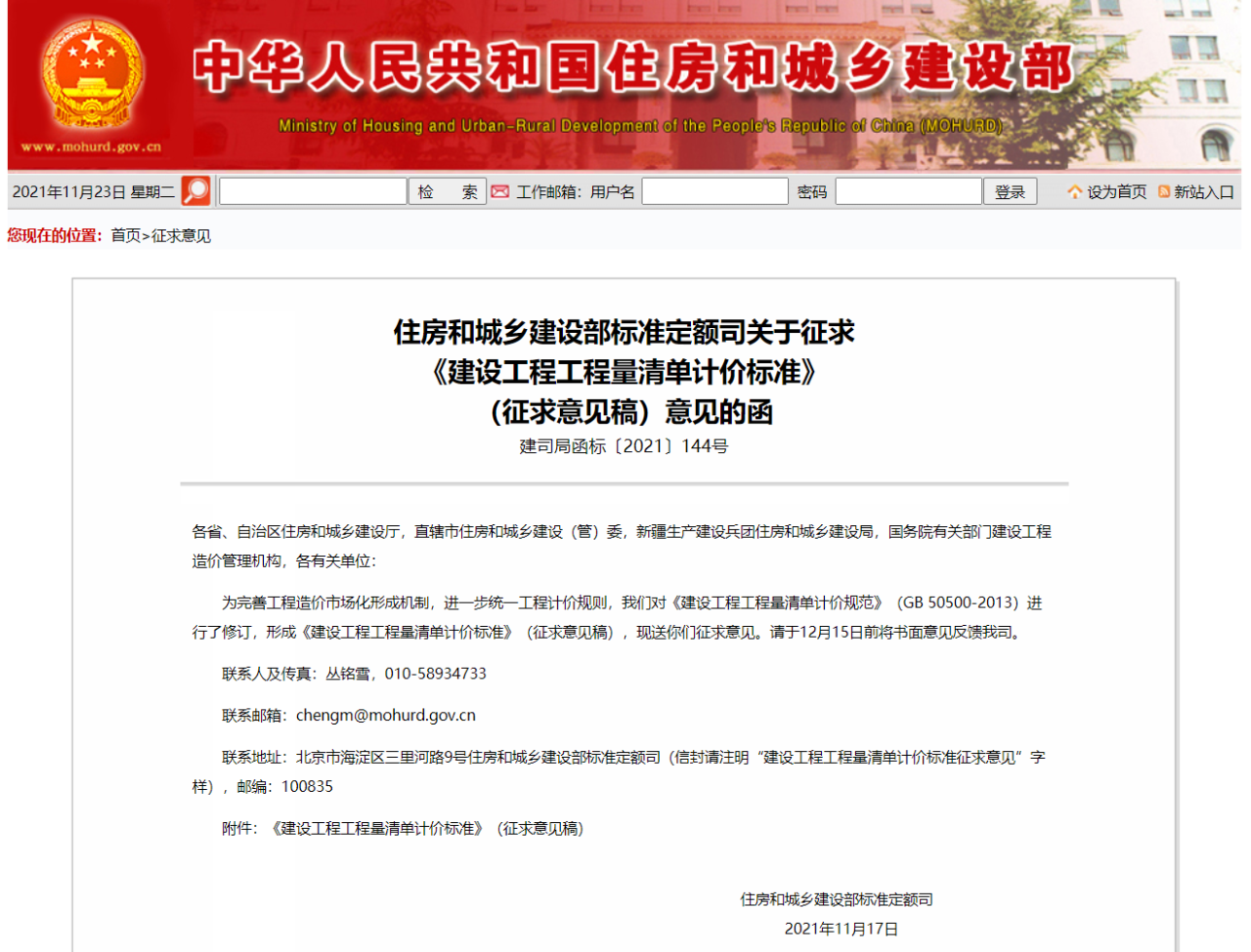 重磅!《建設(shè)工程工程量清單計價標(biāo)準(zhǔn)》征求意見稿發(fā)布!